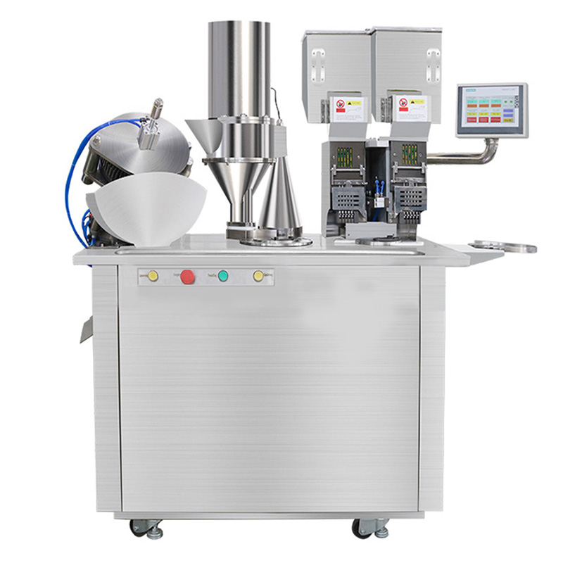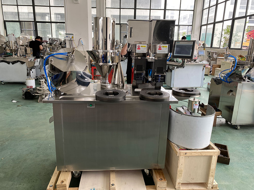 2.In the design of the equipment, the double head semi automatic capsule filling machine is adopted. Compared with the old semi-automatic capsule filling machine, the speed, mold replacement, filling degree and maintenance of the double head automatic capsule filling machine have made obvious progress. The equipment has become more rapid, convenient, simple and stable. In the aspect of capsule locking, we use pneumatic control and automatic capsule locking to save labor time.